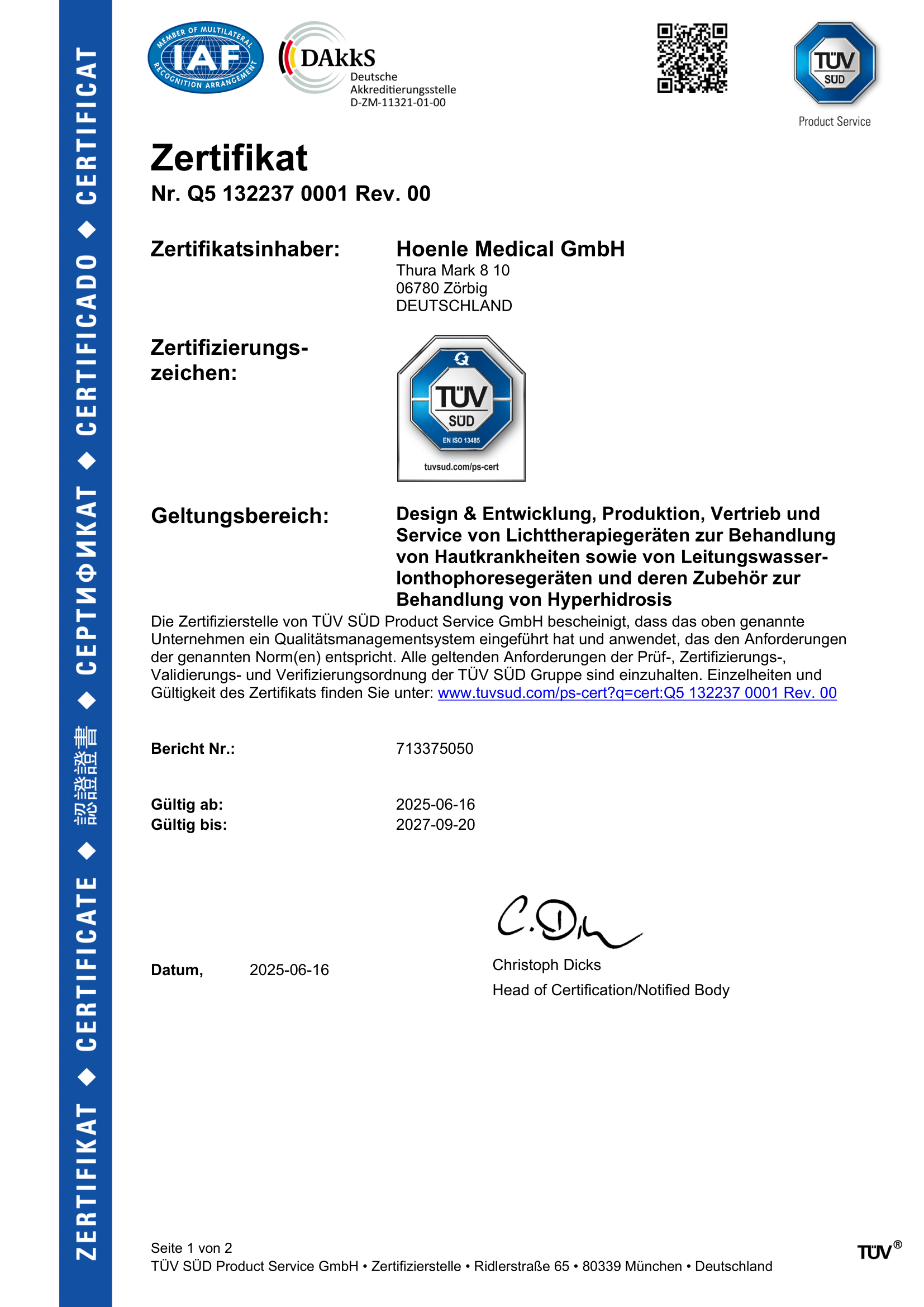 Výrobca: Dr. K. Hönle Medizintechnik GmbH, Nemecko (CE 0123)